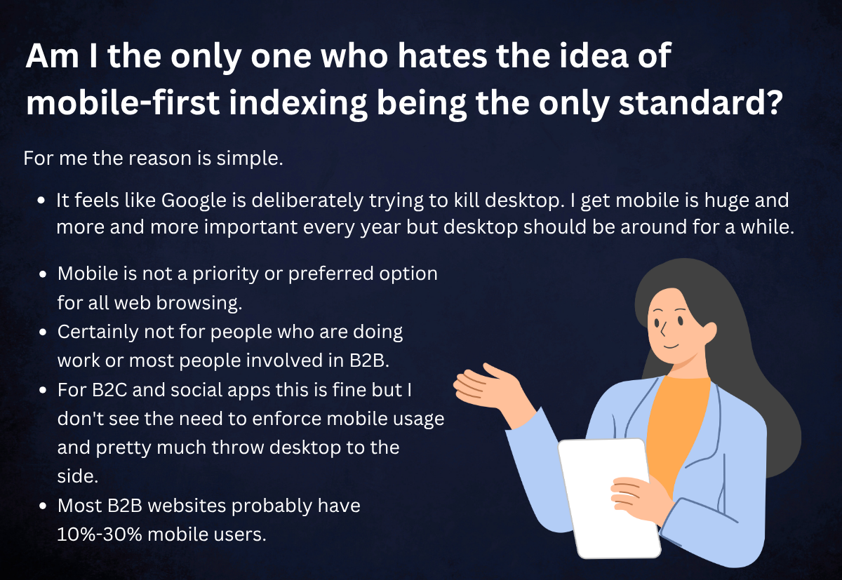 But beyond data, the internet is full of marketers still wrestling with this shift. We see people argue that Google’s obsession with mobile felt like “killing the desktop altogether.” They argued that not every user prefers browsing on a small screen, which, fair point, is true for some industries.